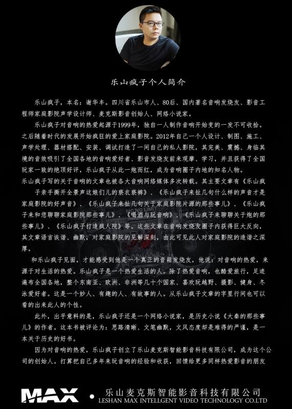 樂(lè)山麥克斯智能影音科技有限公司 地址:樂(lè)山市市中區(qū)瑞祥路一段1507號(hào)4幢5區(qū)3樓